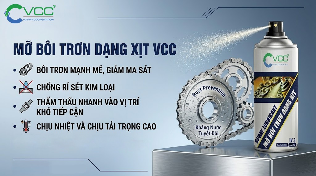 Lợi ích khi sử dụng mỡ bôi trơn dạng xịt LV 3 của VCC