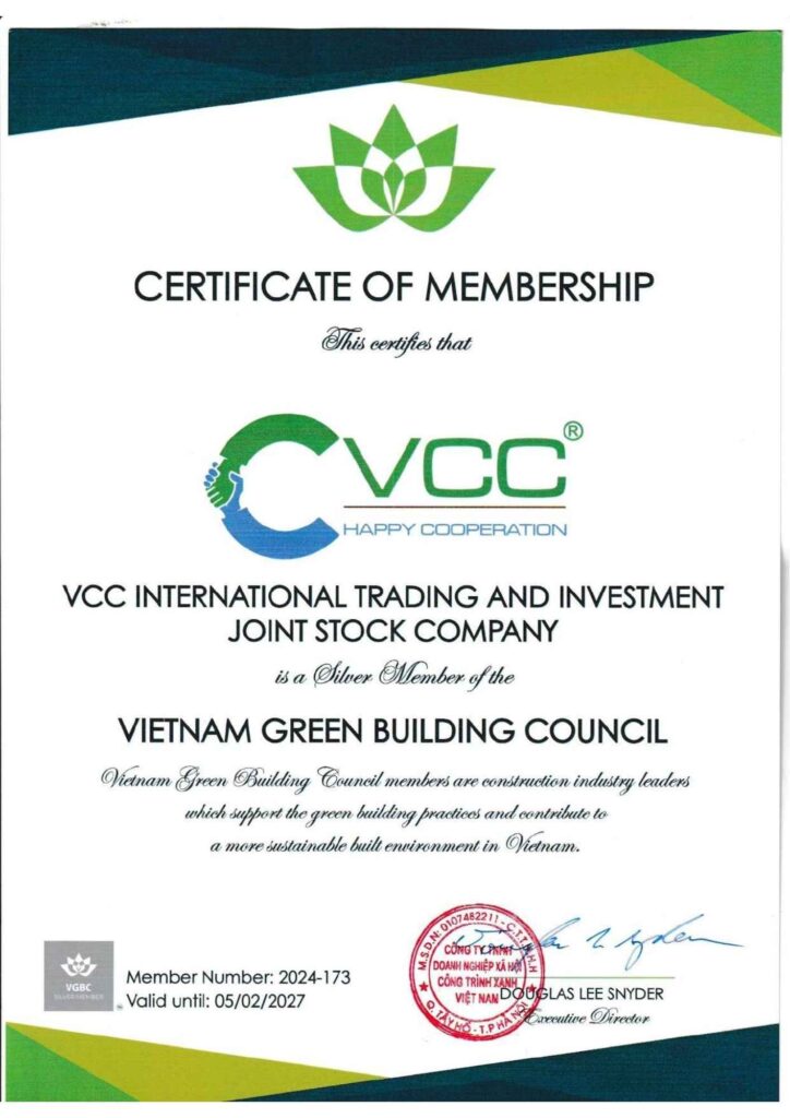 Thị trường hiện nay ngày càng quan tâm đến vật liệu xanh. Cho nên, việc lựa chọn đơn vị có định hướng rõ ràng sẽ tạo thêm niềm tin cho khách hàng. Là hội viên bạc của VGBC, VCC tiếp tục theo đuổi con đường phát triển gắn với chất lượng và trách nhiệm.